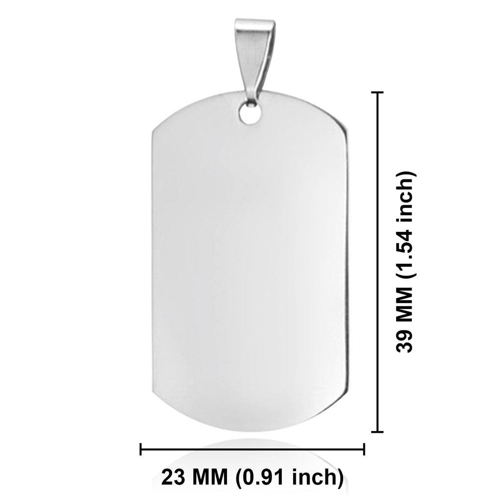 • Dog Tag Dimension: 39 MM (1.54 inch) x 23 MM (0.91 inch) x 2 MM (0.08 inch)